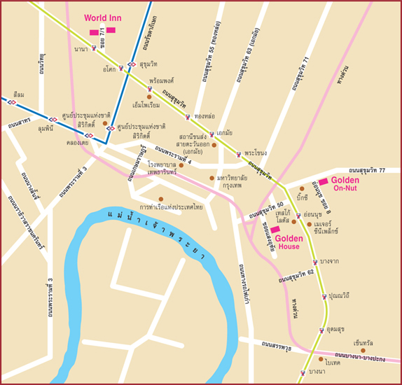 ที่สะดวกสบาย บนถนนสุขุมวิท 77 โกลเด้น อ่อนนุช อพาร์ตเมนต์ อยู่ใกล้กับสถานที่สำคัญต่างๆ มากมาย อาทิเช่น